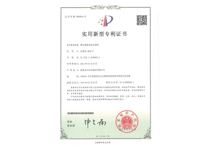 聚乙烯丙綸防水卷材膠粘劑及其制備方法專利證書
